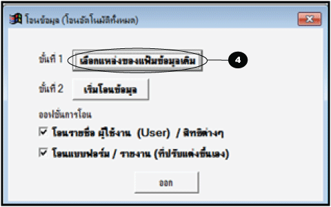 (ถ้าเปิดค้างไว้--จะไม่สามารถโอนข้อมูลเดิมเข้ามาได้) |